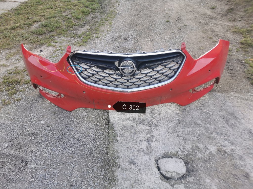 302 - Nárazník Opel Mokka X, vrchná časť nárazníka s parkovacím senzorom + maska, poškodenie zaznačené na nárazníku